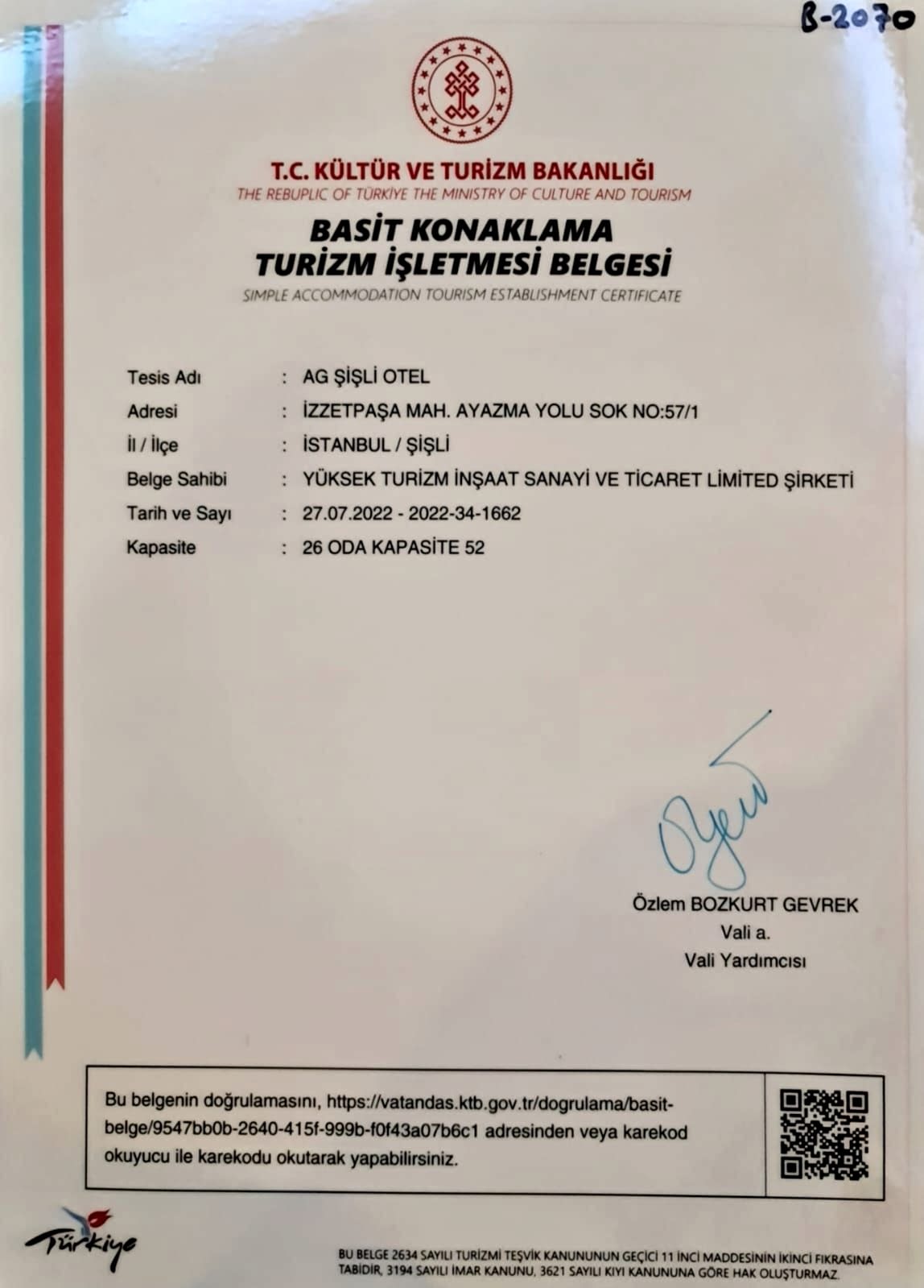 Otel Sertifikası